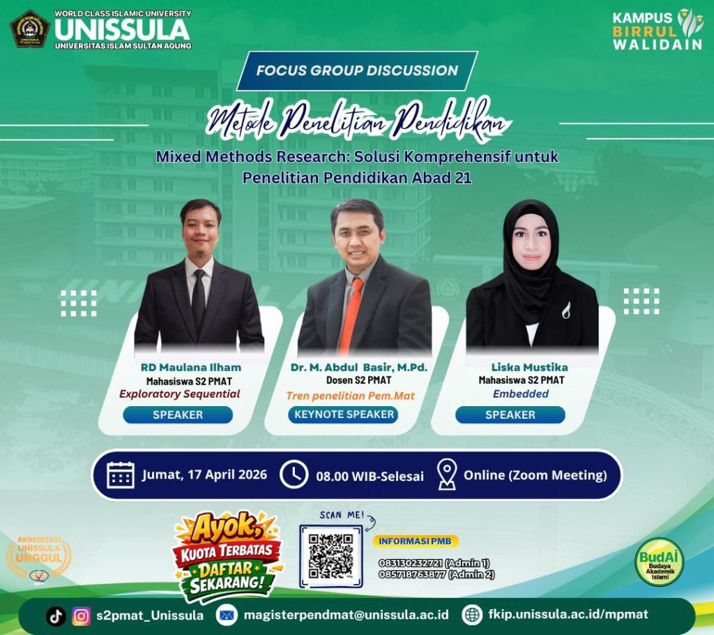 Dalam rangka menghadapi tantangan pendidikan di era digital, FKIP UNISSULA juga terus berupaya memperbarui kurikulum dan metode pembelajarannya, sehingga lulusannya mampu beradaptasi dengan cepat terhadap perkembangan teknologi dan perubahan kebutuhan di lapangan pendidikan.FKIP Unissula juga berkomitmen untuk menghasilkan lulusan yang tidak hanya kompeten secara akademis, tetapi juga memiliki karakter Islami yang kuat. Dengan memadukan nilai-nilai keislaman dan keilmuan, FKIP Unissula berupaya mencetak guru-guru yang mampu memberikan kontribusi positif bagi dunia pendidikan dan masyarakat secara luas