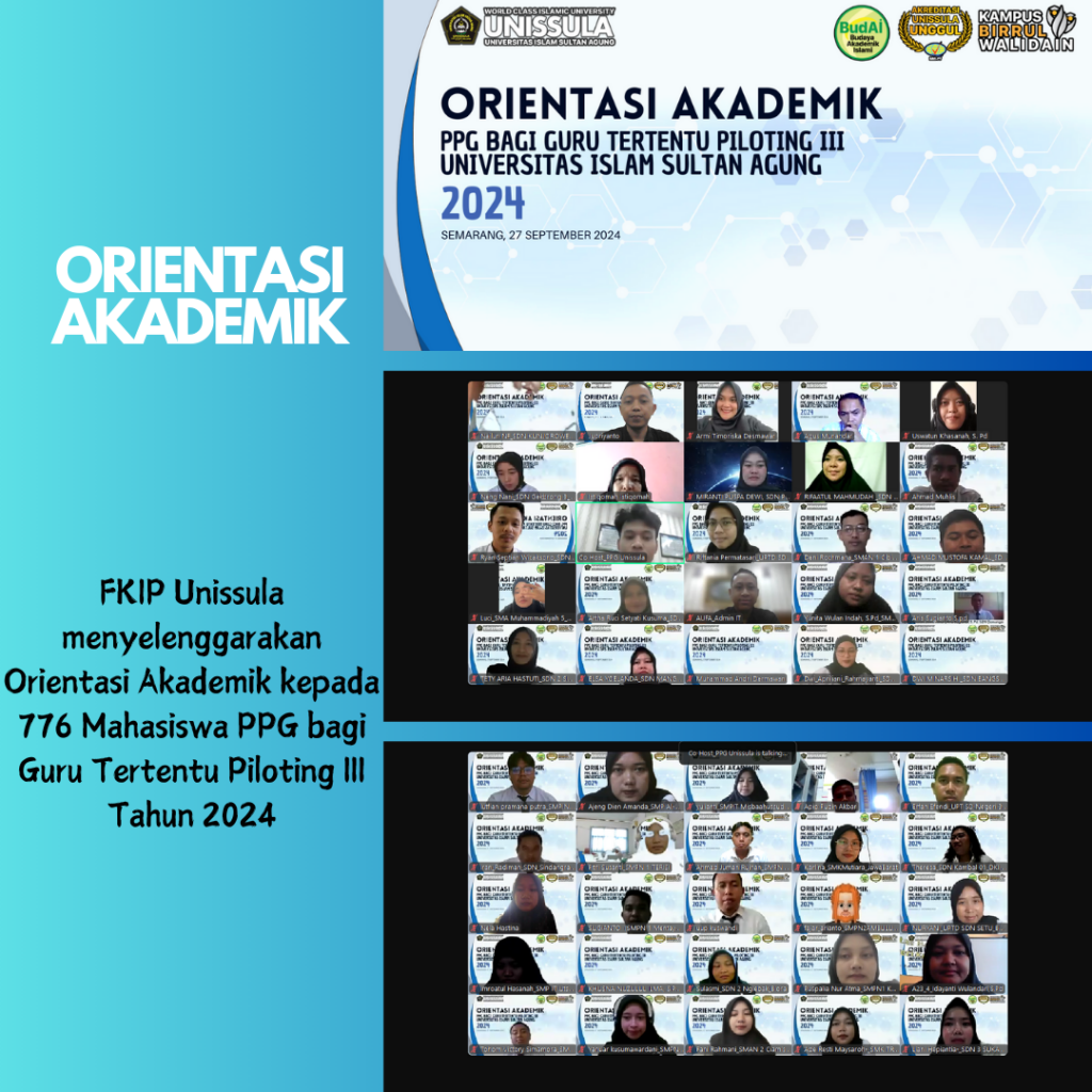 Semarang, 27 September 2024 Fakultas Keguruan dan Ilmu Pendidikan, Universitas Islam Sultan Agung sebagai LPTK Penyelenggara Pendidikan Profesi Guru menyelenggarakan Orientasi Akademik kepada 776 Mahasiswa PPG bagi Guru Tertentu Piloting III Tahun 2024 secara daring. Peserta PPG bagi Guru Tertentu Piloting III Universitas Islam Sultan Agung terdiri dari tiga bidang studi; Bahasa Indonesia sebanyak 207…
