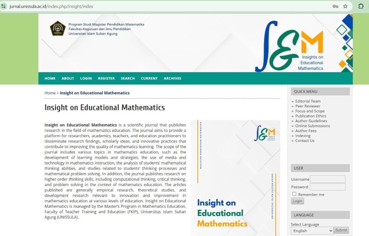 Read MoreSemarang — Program Studi Magister Pendidikan Matematika di Universitas Islam Sultan Agung (UNISSULA) kembali menunjukkan komitmennya dalam pengembangan keilmuan dan publikasi akademik dengan merilis jurnal ilmiah terbaru bertajuk Insight on Educational Mathematics. Kehadiran jurnal ini diharapkan menjadi wadah bagi para akademisi, peneliti, dan praktisi pendidikan matematika untuk mempublikasikan hasil penelitian yang inovatif dan berdampak bagi…